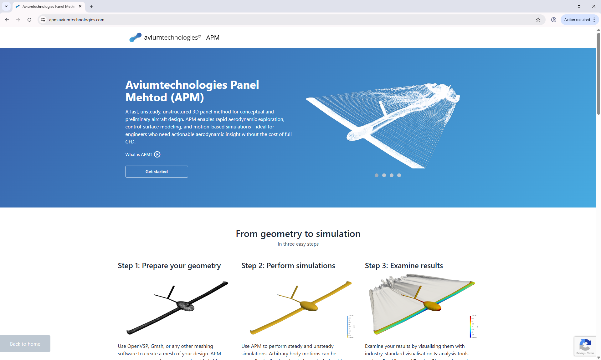 The Aviumtechnologies Panel Method (APM) is a low-order, unsteady, unstructured potential flow solver for arbitrary geometries suitable for quick what-if design studies.